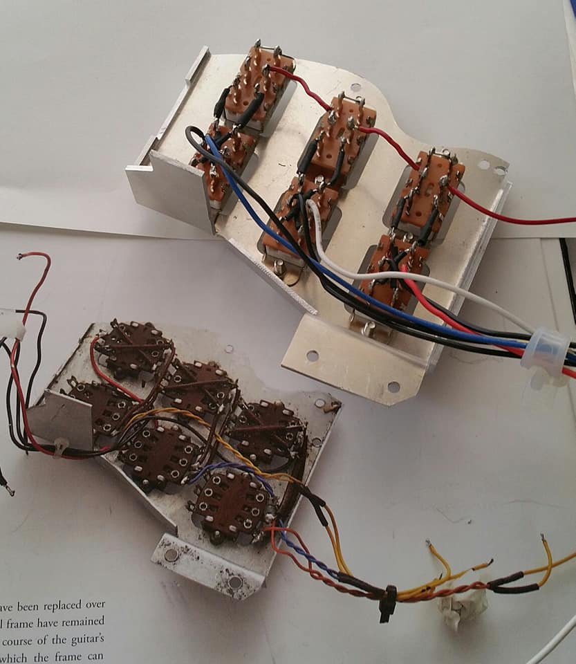 SWITCHING SYSTEM レスぺ本の上に置いてパチリ。配線はBURNS TRI-SONICダイヤグラムです。 スイッチは廃盤で入力無理なので、スイッチクラフトで。 共有: X で共有 (新しいウィンドウで開きます) X Facebook で共有 (新しいウィンドウで開きます) Facebook いいね 読み込み中… 関連 コメントは受け付けていません。