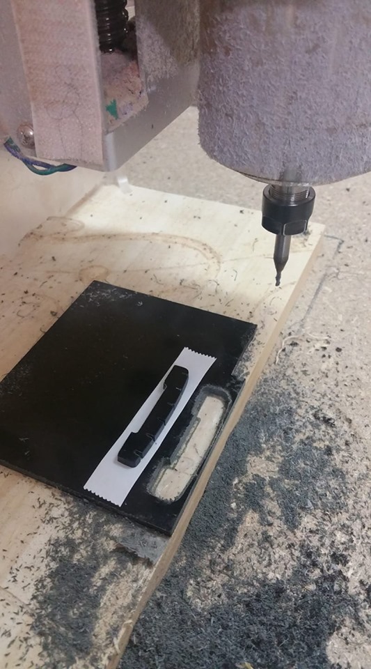 指板はオークを黒くペイントしています。このペイントの後にフレットを打っています。