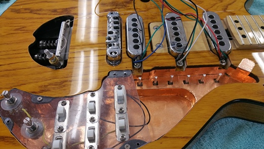 ハードウェア:ウィルキンソン ローラーブリッジ、軟鉄のブロックと焼き入れした鉄のナイフエッジによるスプリング式ビブラート・テイルピース、アルミ製コントロール・ノブ、ゴトー製ロック式ペグ