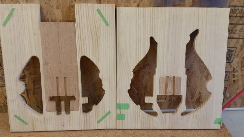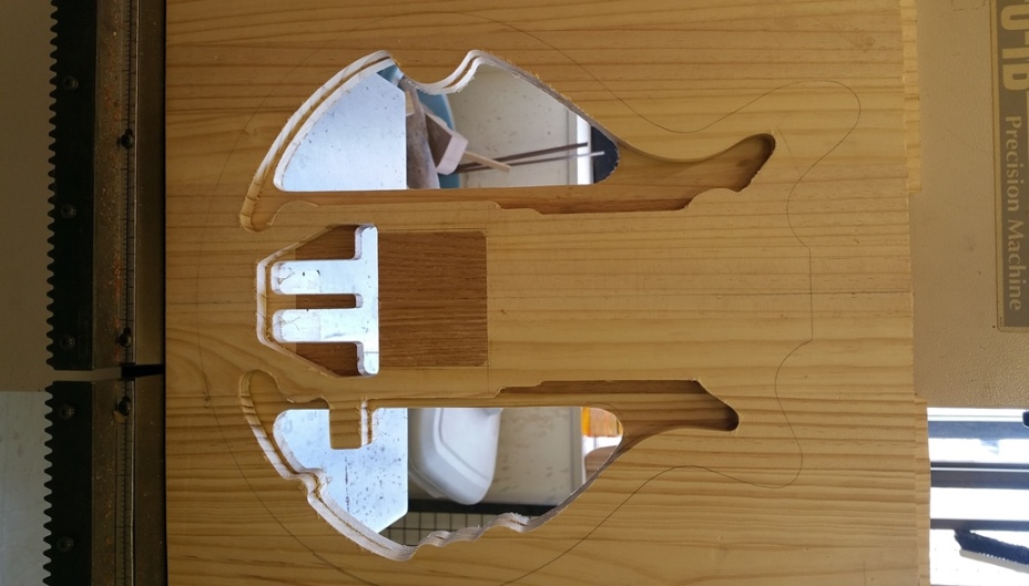 ボディー材:チェンバード・ブロックボード、100年前のオークの心材、マホガニーの薄板、ピックガードとピックアップ周辺の補強材、トラスロッド・カバーは黒のパースペクス