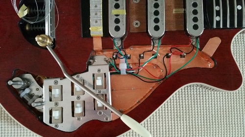 ピックアップ:バーンズ製トライ・ソニック(ブライアン サインモデル)、シングル・コイルを3基直列に接続